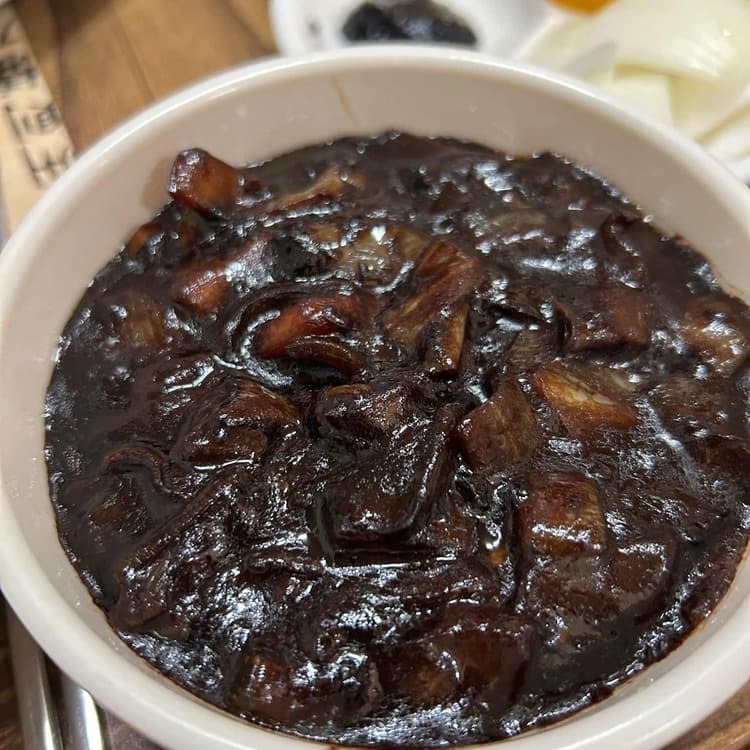 - 플레이팅: 삶은 면 위에 완성된 짜장 소스를 얹어 냅니다.